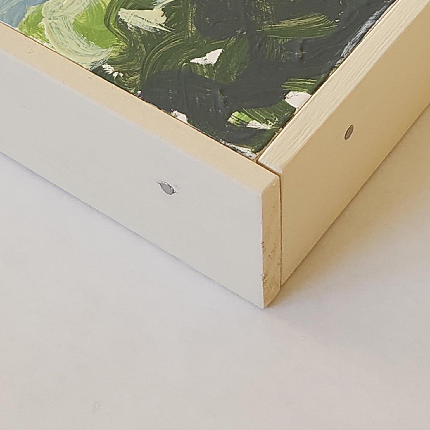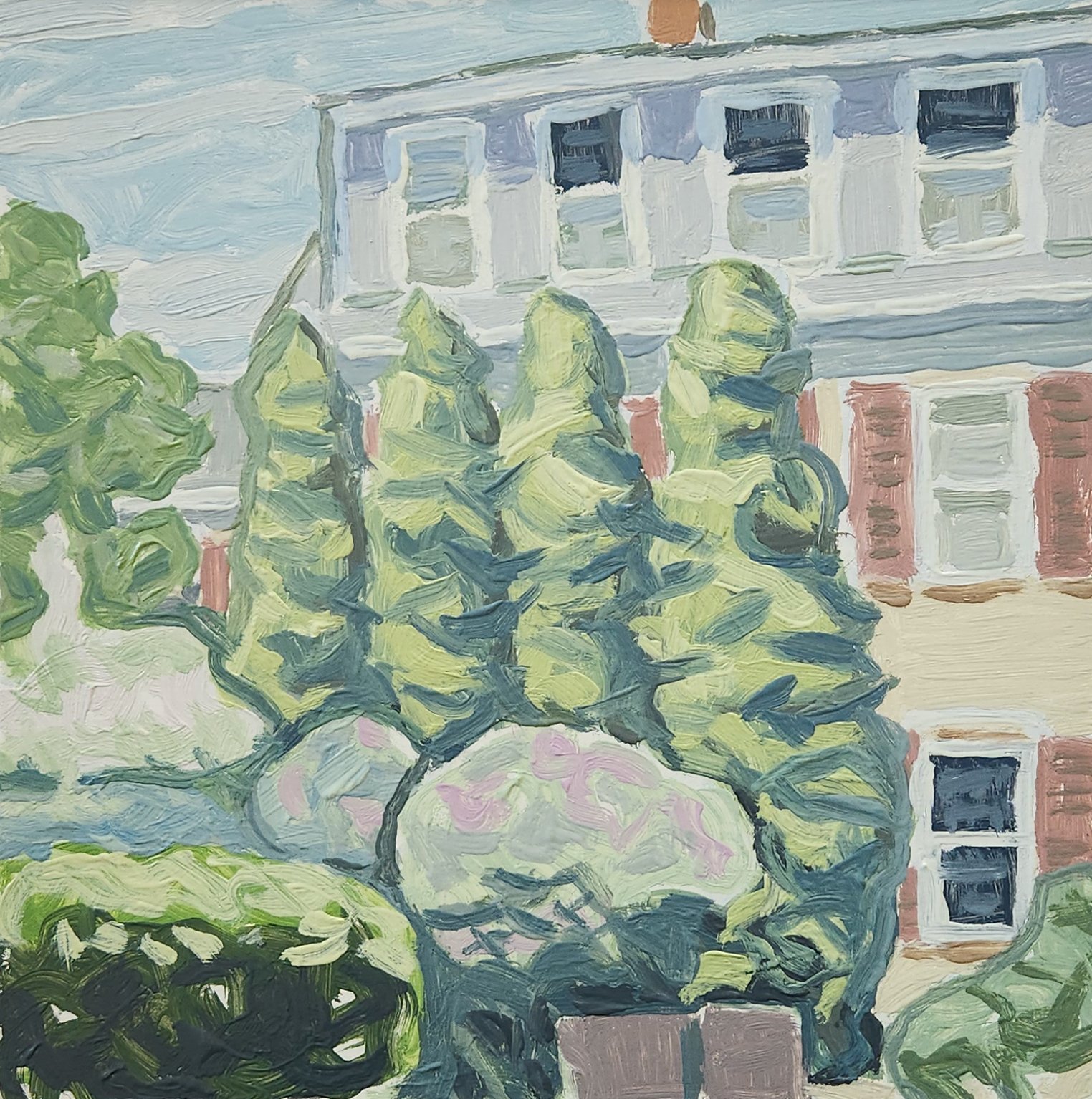Oil on cradled panel in painted wood artist's frame. 10 3/8 x 10 3/8 in. including frame. Frame is 1 3/8 in. deep. Ready to hang. Shipping available to U.S. destinations only (contiguous 48 states).