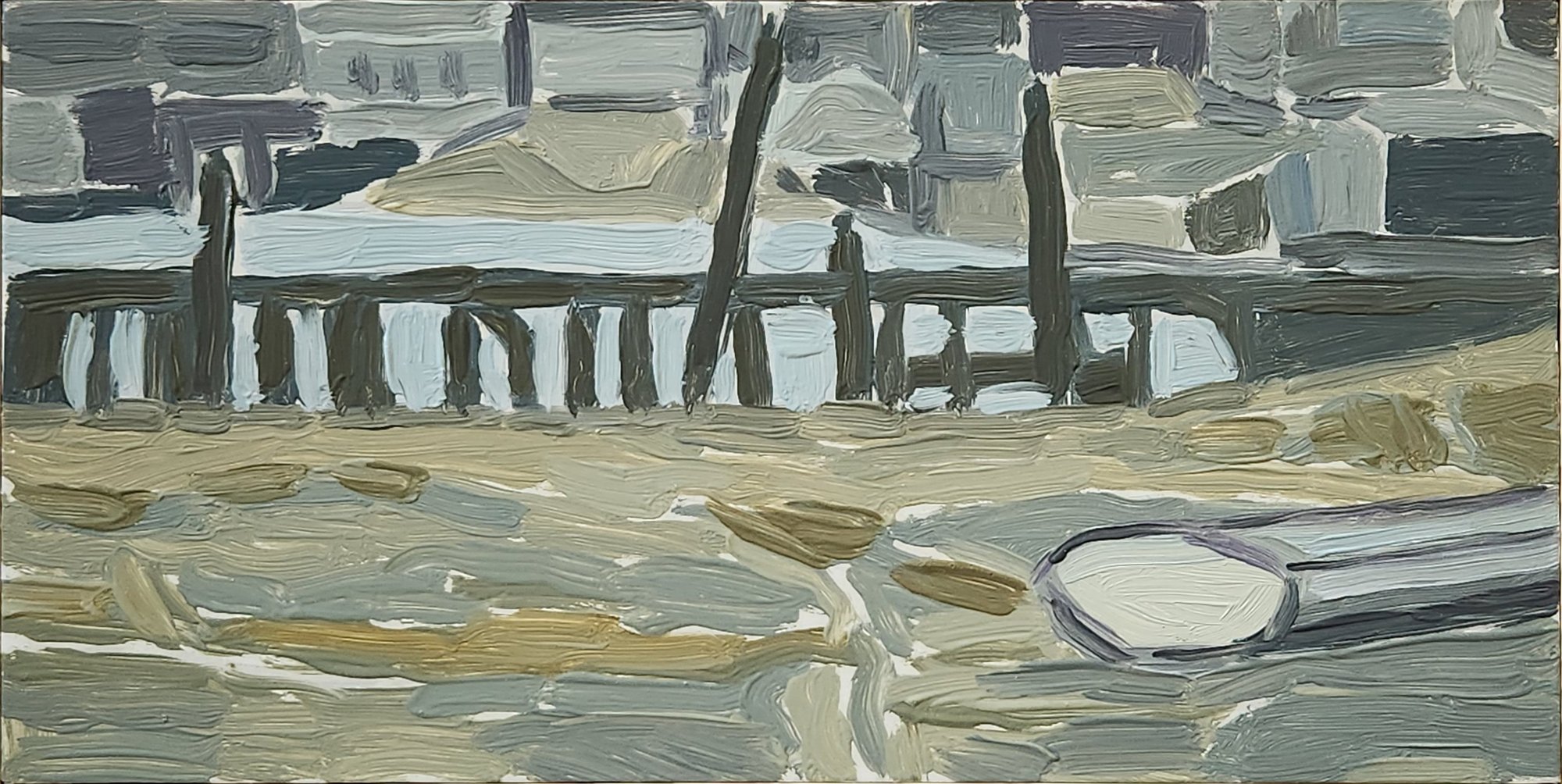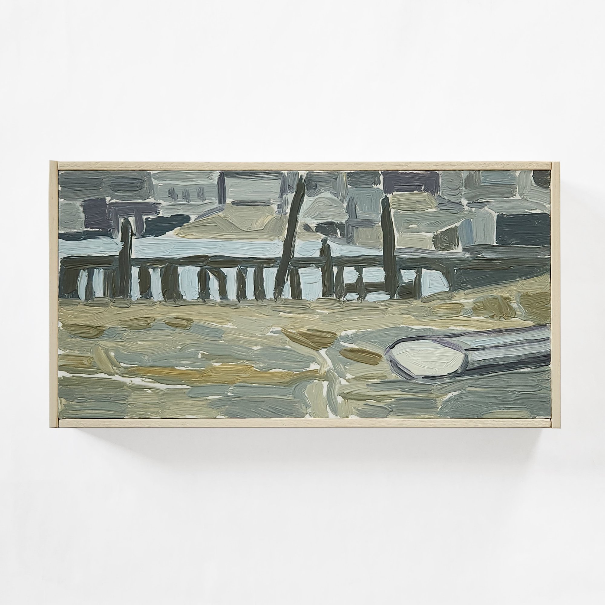 Oil on cradled panel in painted wood artist's frame. 6 3/8 x 12 3/8 in. including frame. Frame is 1 3/8 in. deep. Ready to hang. Shipping available to U.S. destinations only (contiguous 48 states).