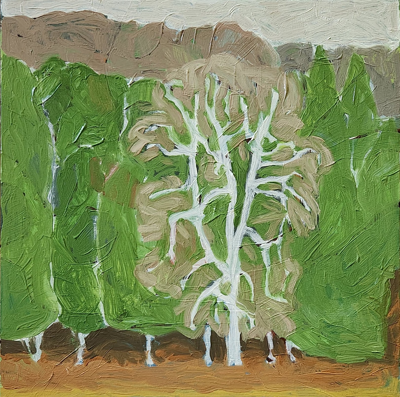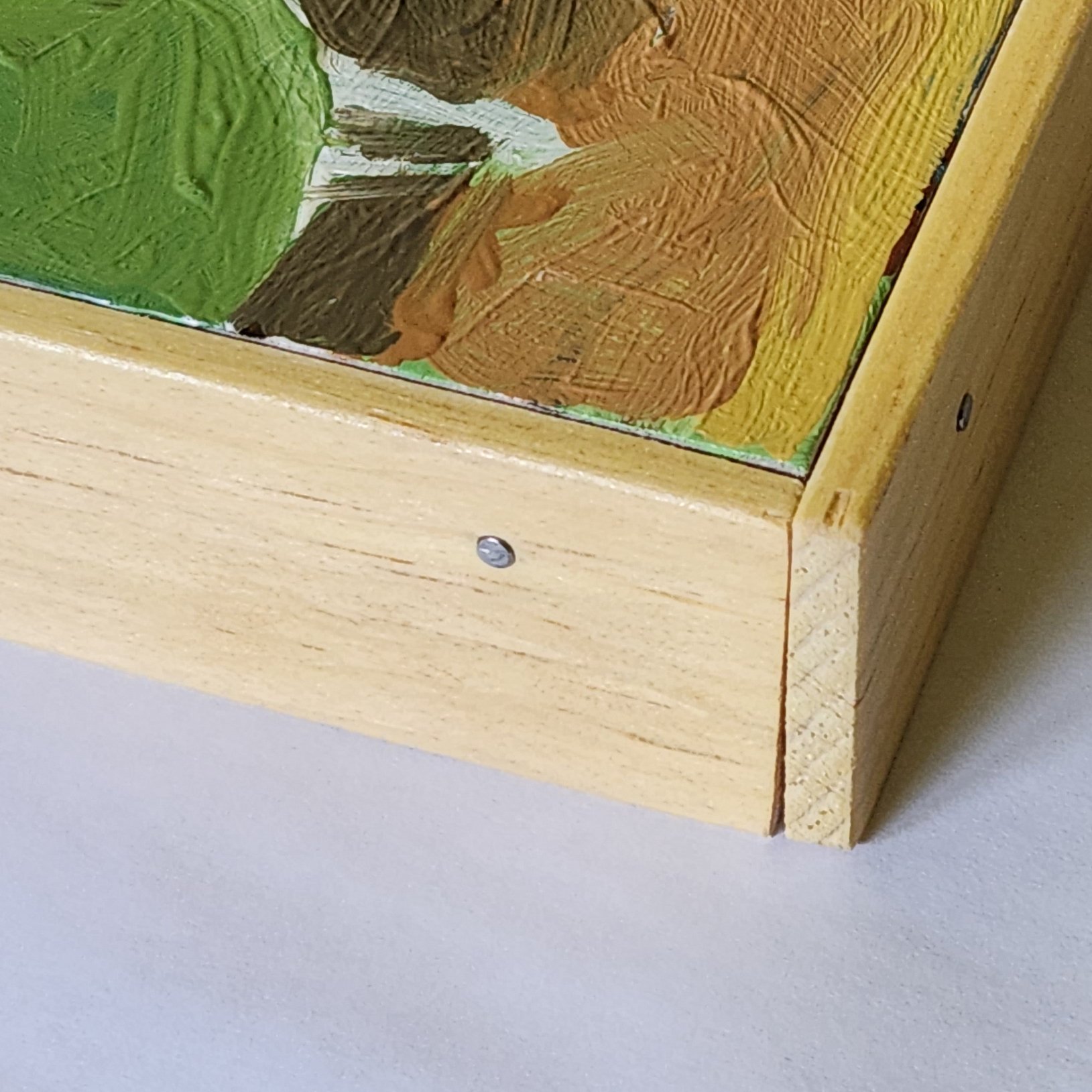 Oil on cradled panel in artist's frame. 12 3/8 x 12 3/8 in. including frame. Frame is 1 3/8 in. deep. Ready to hang. Shipping available to U.S. destinations only (contiguous 48 states).