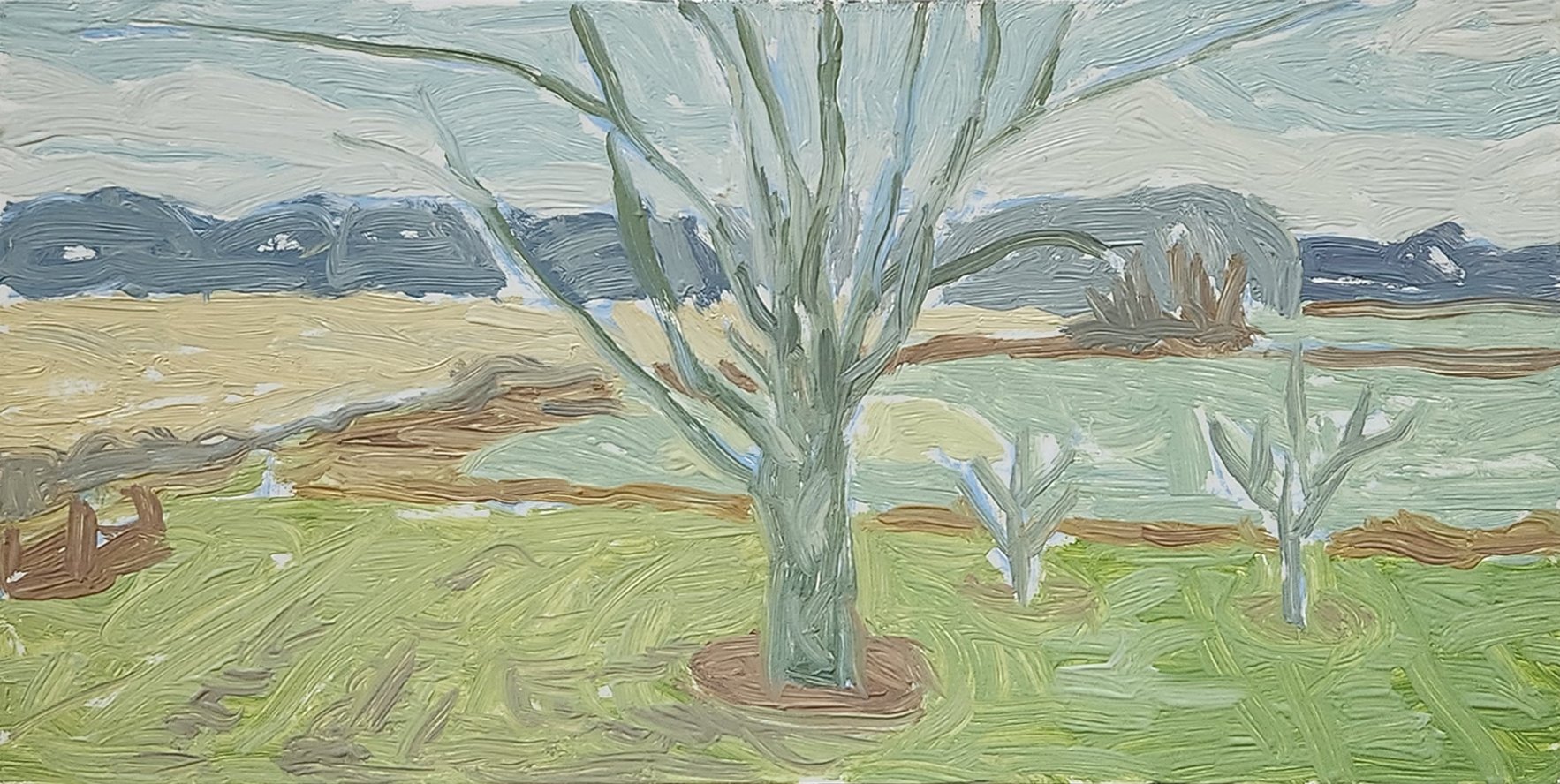 Oil on cradled panel in painted wood artist's frame. 6 3/8 x 12 3/8 in. including frame. Frame is 1 3/8 in. deep. Ready to hang. Shipping available to U.S. destinations only (contiguous 48 states).